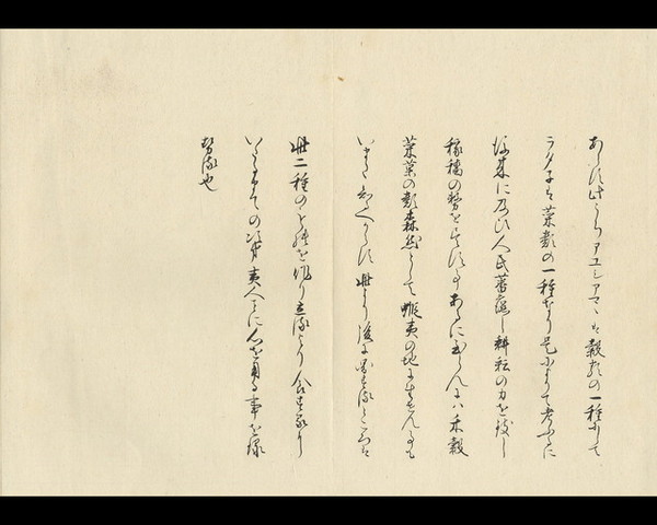 このことから考えるに、将来蝦夷地に人民が殖え、農耕に力を尽くすことになった場合、禾穀・草菜の類が、この地に森の繁りのように生じてこないとも限らないであろう。なお、これから後に掲げる図は、この二種の作物を栽培するところから食するに至る迄の次第のうちから、アイヌの人々が殊に心を用いる場面を収録したものである。
