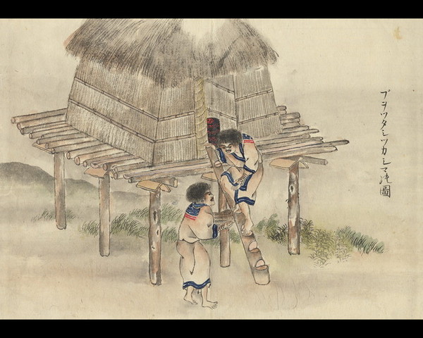 * その建築形態は通常の家とは異なり、何とか工夫して床を高くしつらえ、住居から引き離れた場所に建てられるものである。詳しくは本稿「住居の部」に記してある。
