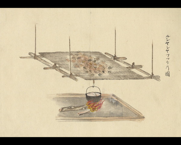 とりいてゝ簾にのせ、囲炉裏の上に図の如くに