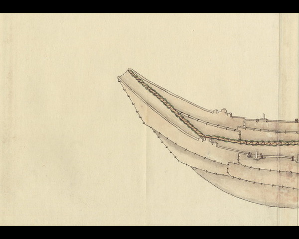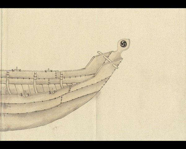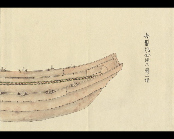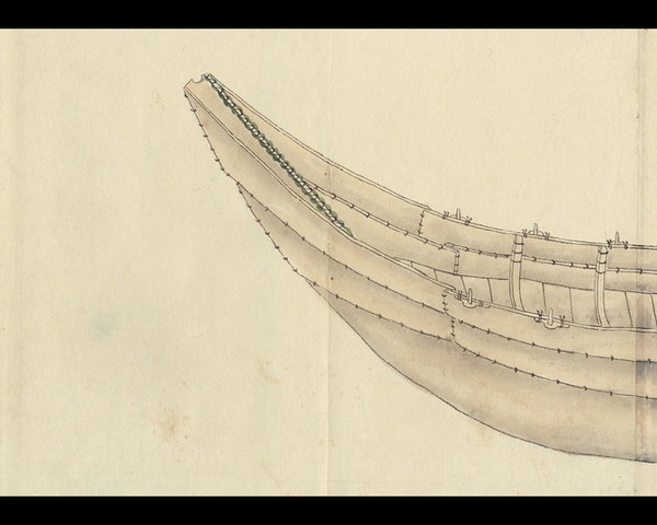 これは舟の製作が完全に終ったところである。二種類のうち、前の図はシリキシナイからビロウまでのあいだで用いられる舟である。のちの図はビロウからクナシリで用いられている舟である。詳しいことは図を見て考えてほしい。