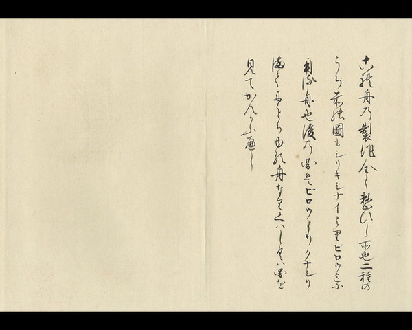 これは舟の製作が完全に終ったところである。二種類のうち、前の図はシリキシナイからビロウまでのあいだで用いられる舟である。のちの図はビロウからクナシリで用いられている舟である。詳しいことは図を見て考えてほしい。