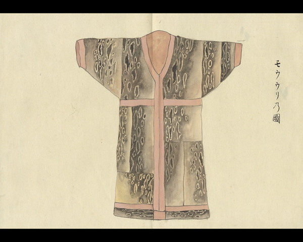 此衣は水豹の皮を縫ひ合せて造れるなり、これ
